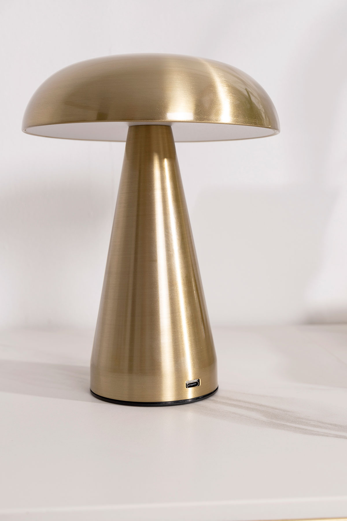 LÁMPARA PORTATIL METAL DORADO, RECARGABLE CON CABLE USB. 21*19 CM (4 POSICIONES LUZ)