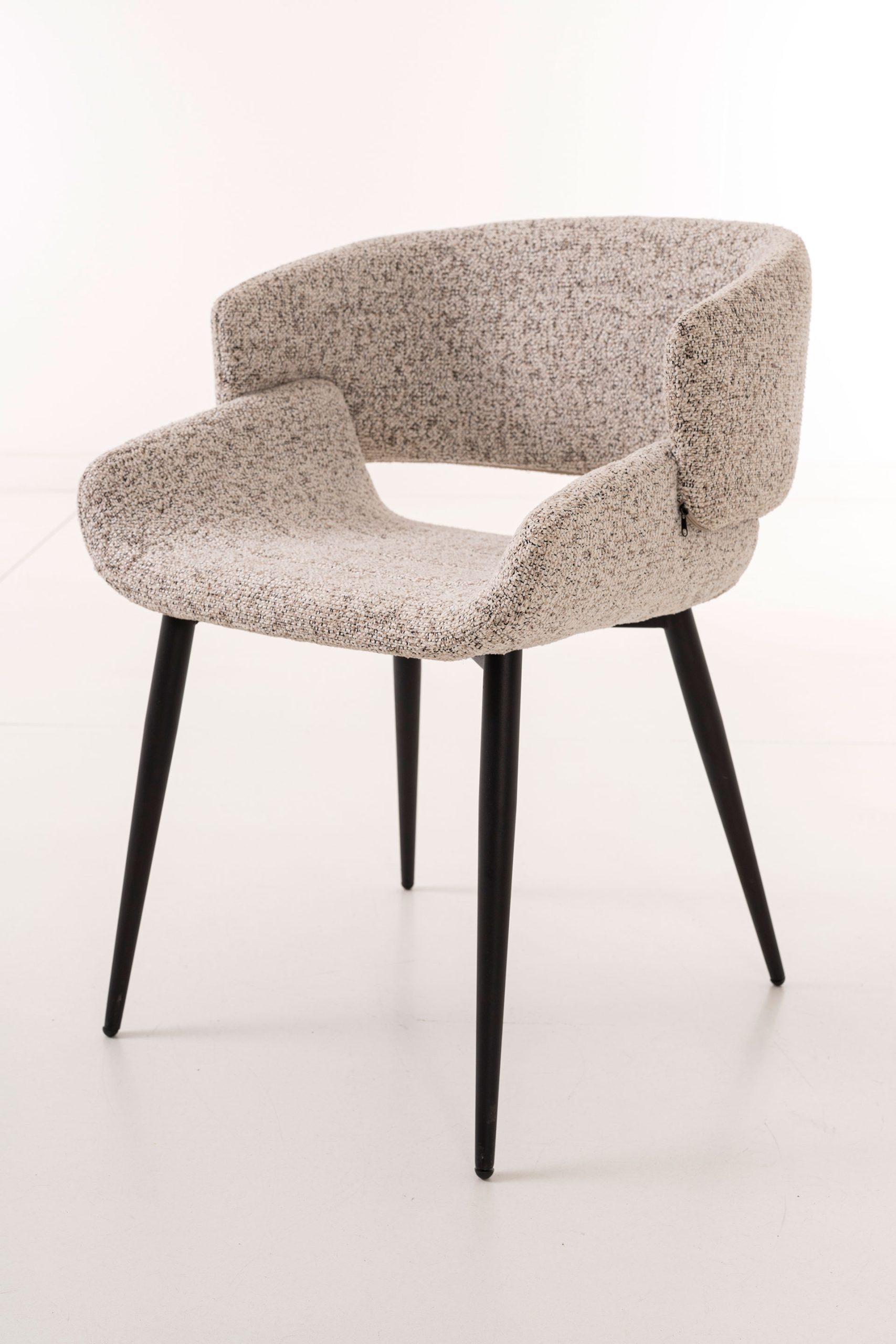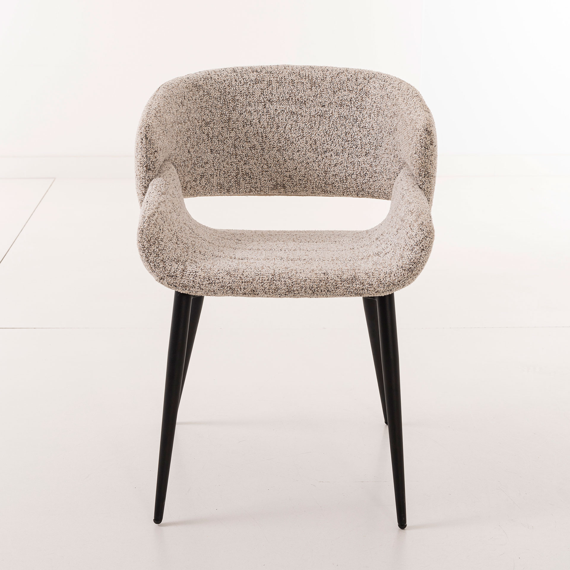 SILLA GRETA 77*57*60 CM, ASIENTO CURVADO TAPIZADO BEIGE CON TELA EASYCLEAN Y PATAS METALICAS EN NEGRO